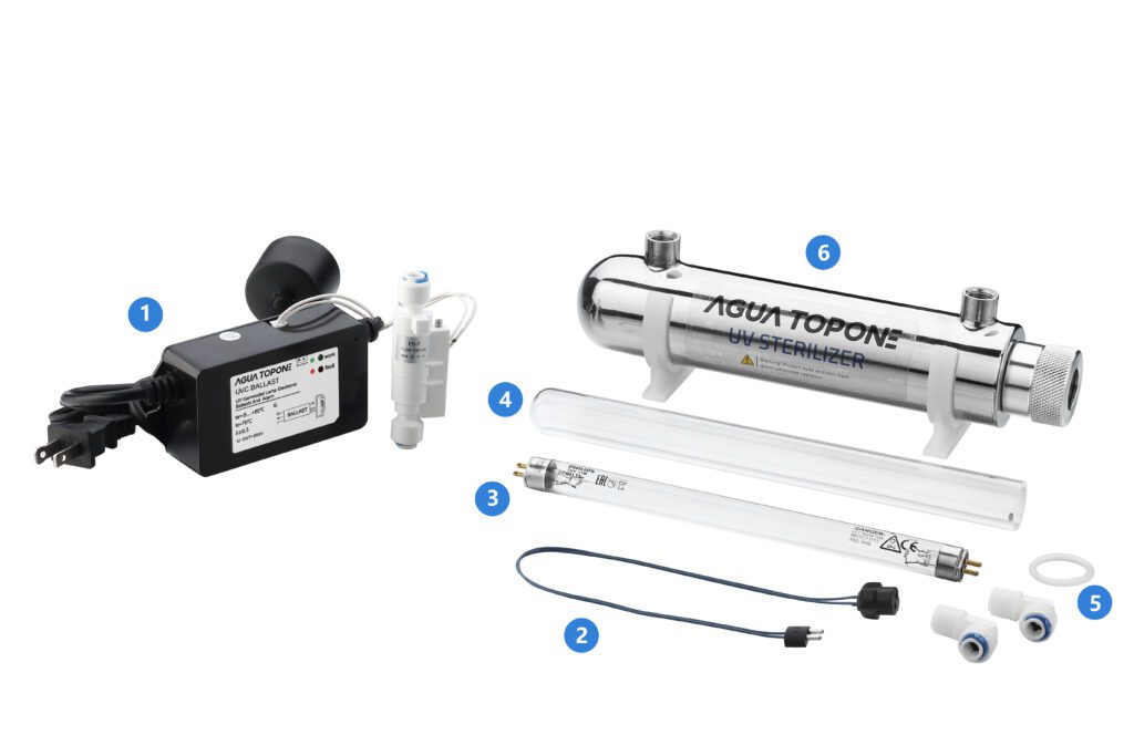 Componentes del filtro de agua con luz UV