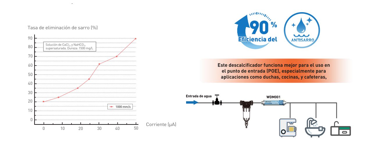 Se trata de un descalcificador de agua que se aplica directamente en equipos terminales, es decir, en puntos específicos de uso de agua. A diferencia de los sistemas para toda la vivienda, su alcance se limita al desincrustado y la prevención de incrustaciones en equipos concretos, alcanzando una tasa de prevención de hasta el 91%. Se instala principalmente en las tuberías de cafeteras, calentadores de agua, lavadoras y otros equipos, atendiendo a un punto de uso o dispositivo de agua específico.