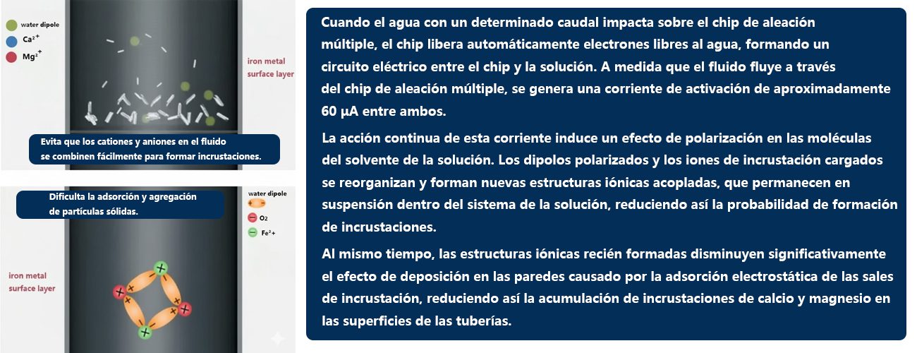 Su diseño en línea (instalación en tubería) permite integrarlo fácilmente en los sistemas de suministro de agua existentes, sin ocupar espacio adicional. Una vez instalado, el equipo comienza a funcionar automáticamente cuando el agua fluye a través del dispositivo.