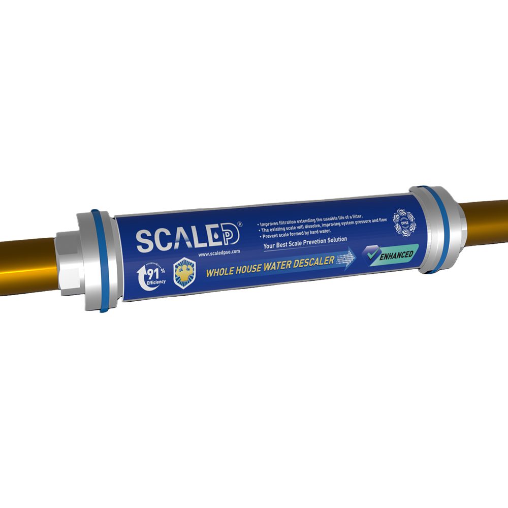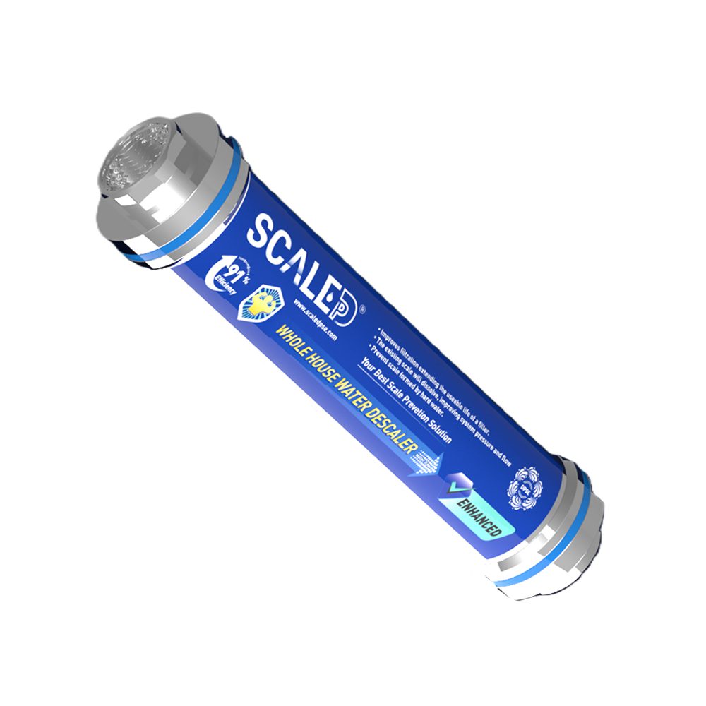 A diferencia de los ablandadores de agua tradicionales para toda la casa, el descalcificador ScaleDp es un sistema de descalcificación física, que no requiere la adición de sal ni consumo de electricidad.