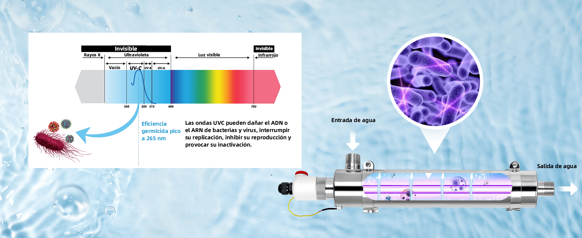 • La eficiencia de esterilización alcanza hasta el 99.99% (E. coli).