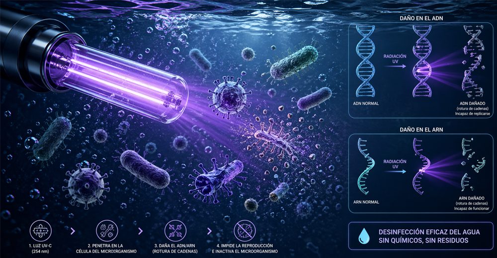 Dato clave: El cloro es ineficaz contra Cryptosporidium, mientras que la UV lo elimina con solo 12 mJ/cm². Esta es una de las grandes ventajas de la desinfeccion del agua con luz ultravioleta.