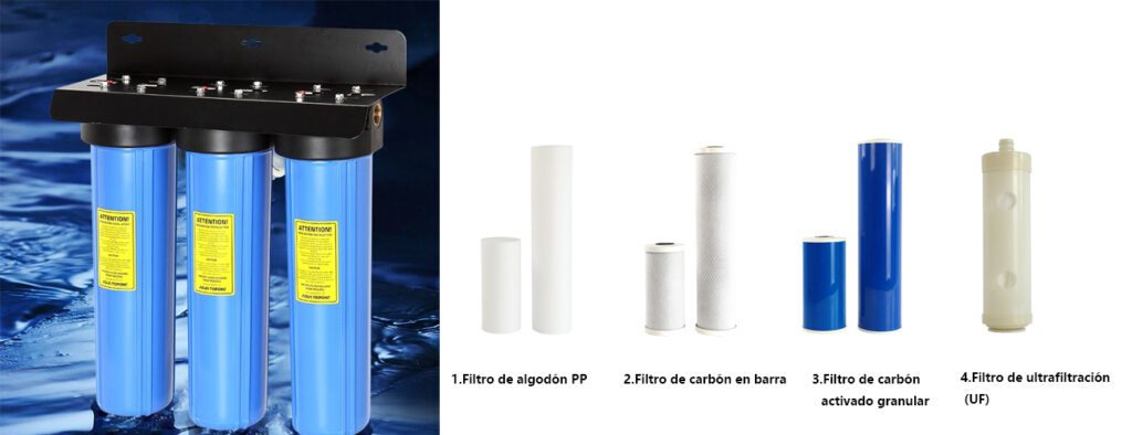 Su función principal es eliminar sedimentos, óxido y partículas grandes presentes en el agua, con una precisión de filtración mínima de 40 μm, garantizando que todas las partículas mayores a este tamaño sean retenidas. En Sudamérica, donde el uso de agua de pozos es frecuente, también pueden aparecer huevos de insectos u otras partículas grandes, que este filtro puede capturar eficazmente. Esto asegura que el agua sea clara y limpia, proporcionando un entorno óptimo para el funcionamiento de los equipos de purificación posteriores, por lo que se coloca como la primera etapa en el sistema de tratamiento de agua.