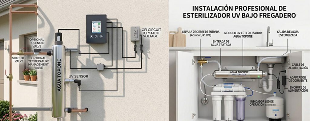 La desinfección UV depende del tiempo de contacto entre los fotones y los microorganismos. Un sistema subdimensionado (p. ej., 2 GPM para toda la casa) dejará que el agua pase demasiado rápido, reduciendo la dosis efectiva. Seleccione la capacidad según el flujo máximo combinado de todos los grifos abiertos simultáneamente.
