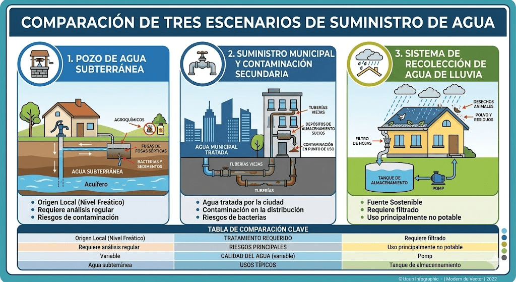 • Agua de pozo o privada: . Riesgo alto y sin monitoreo externo.