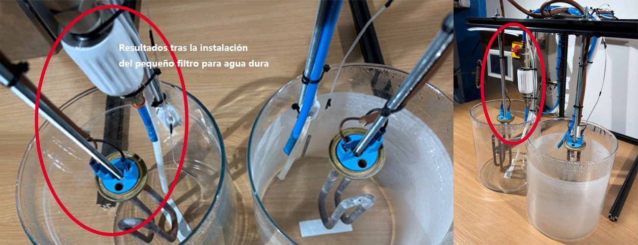 La cal desprendida se presenta en forma de partículas o pequeños bloques sólidos que son arrastrados y evacuados con el flujo del agua. Para equipos sensibles a impurezas en el agua, se recomienda instalar un sistema de filtración adicional.
