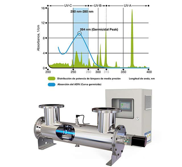 Razón: El espectro UV amplio elimina bacterias, virus y otros patógenos resistentes.